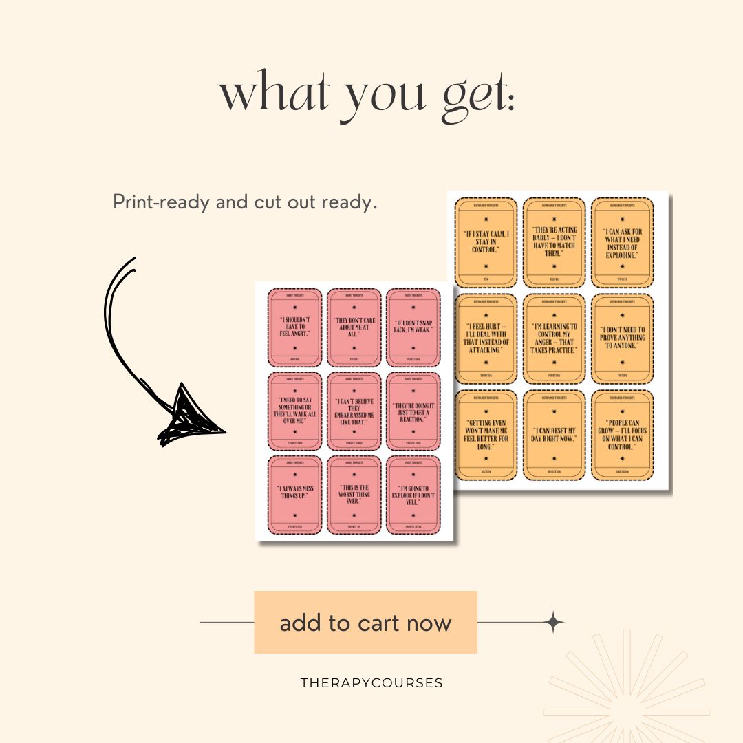Perfect for therapists, school counselors, and group facilitators, this interactive card game makes anger management engaging, not intimidating.