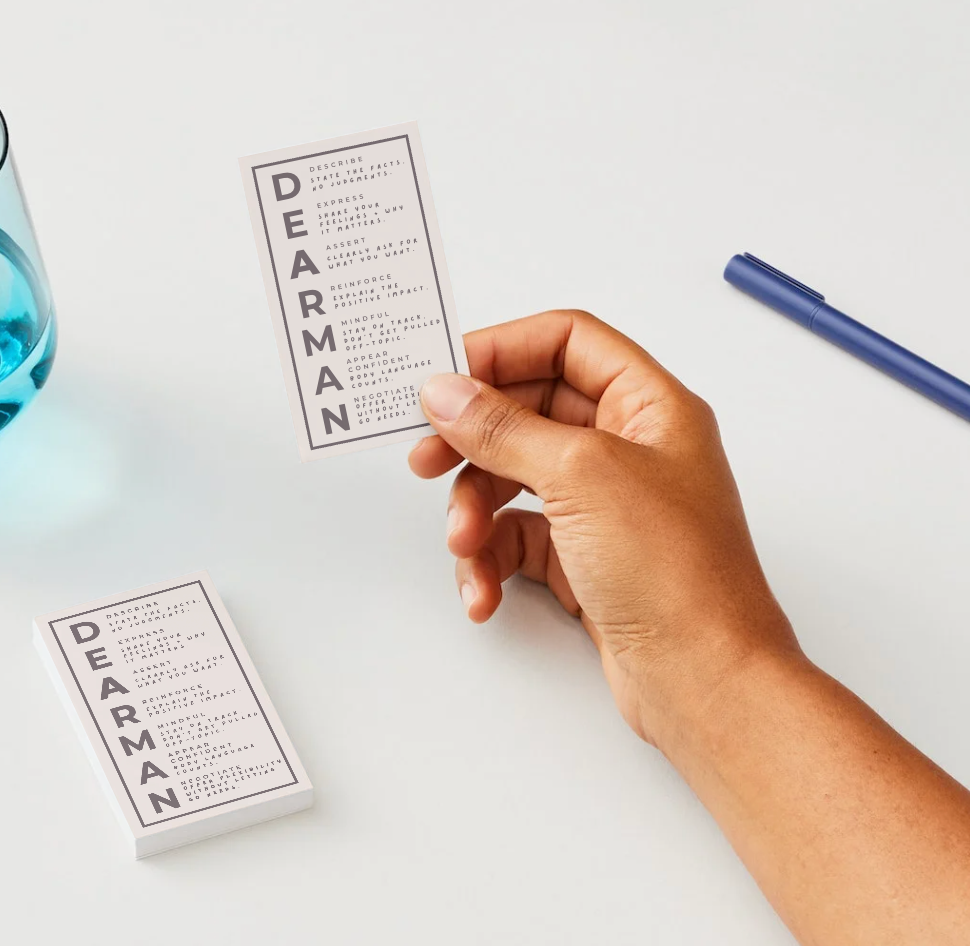 Format: Printable PDF and Ready to use 50 DEARMAN cards