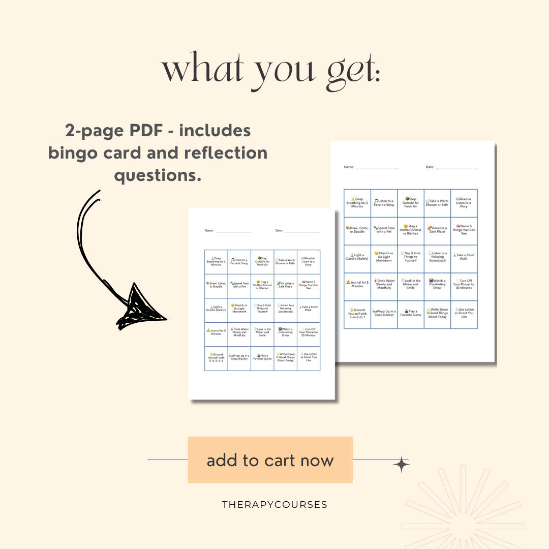 Self-Soothing Bingo – Printable Coping Skills Game (50% off w 50BAG @ checkout)
