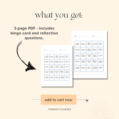 Self-Soothing Bingo is a printable coping skills CBT game where teens (or adults) complete calming activities to manage stress, anxiety, overwhelm, and intense emotions.As they complete each self-soothing strategy—like deep breathing, grounding exercises, and mindfulness techniques—they mark off their bingo squares, building a personal toolbox of coping skills along the way.