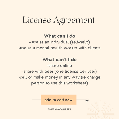 Digital download - License (use for 1:1 and group therapy, not for sharing online or to resell in any way, ie can not charge people to use this document).