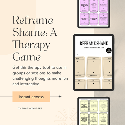 The Shame Reframe Card Deck is a printable therapeutic tool designed to support clients in working through shame-based thoughts with insight, compassion, and clarity. Ideal for individual or group therapy, this deck encourages clients to shift from internalized self-criticism toward self-understanding and healing.
