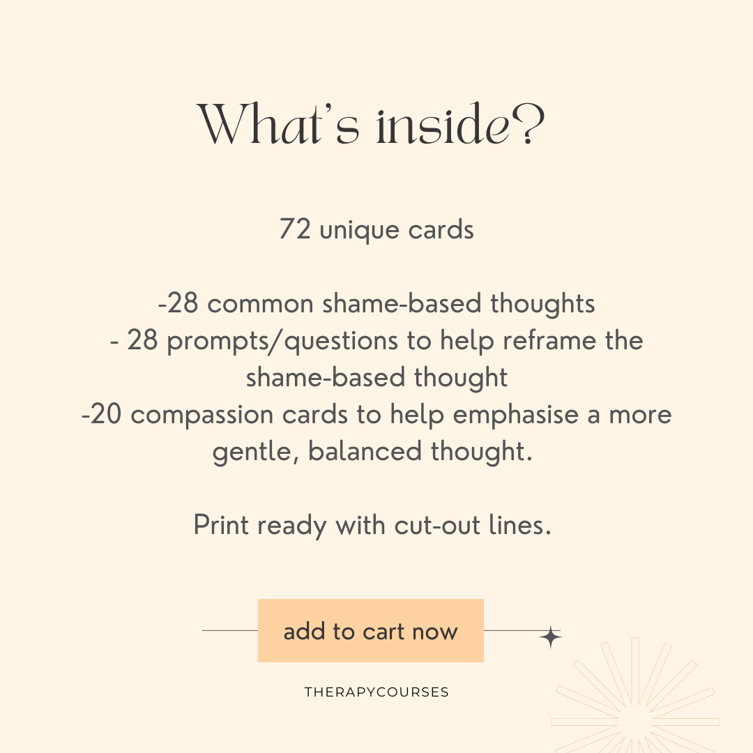 • 28 Shame Thought Cards – Common shame-based beliefs clients often carry