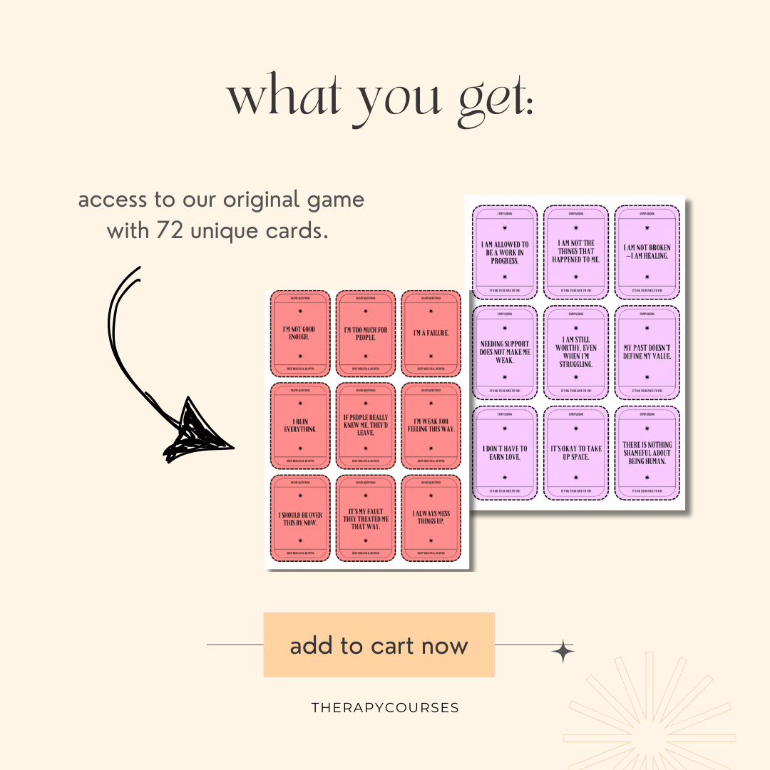 Shame Reframe Card Game - Prompts to Challenge Shame, Group Therapy, CBT Games