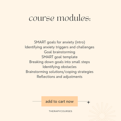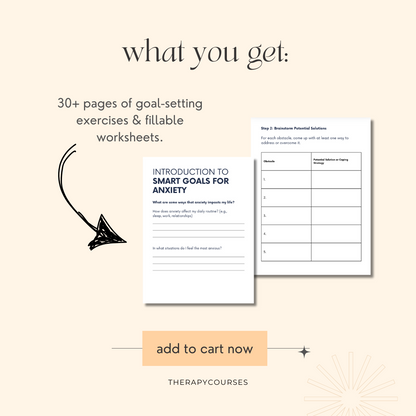 Help your clients take control of their anxiety with structured goal-setting! This 32-page SMART Goals for Anxiety Workbook is designed for therapists, counselors, and mental health professionals to use with clients who struggle with anxiety. Using the proven SMART (Specific, Measurable, Achievable, Relevant, and Time-bound) goal-setting framework, this workbook provides clear, guided exercises to help clients break down overwhelming worries into actionable steps.