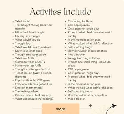 All of our worksheets are print ready. So just choose the pages you want to print and off you go. You can give them to clients to take home or use them for your notes. We also offer some digital worksheets.